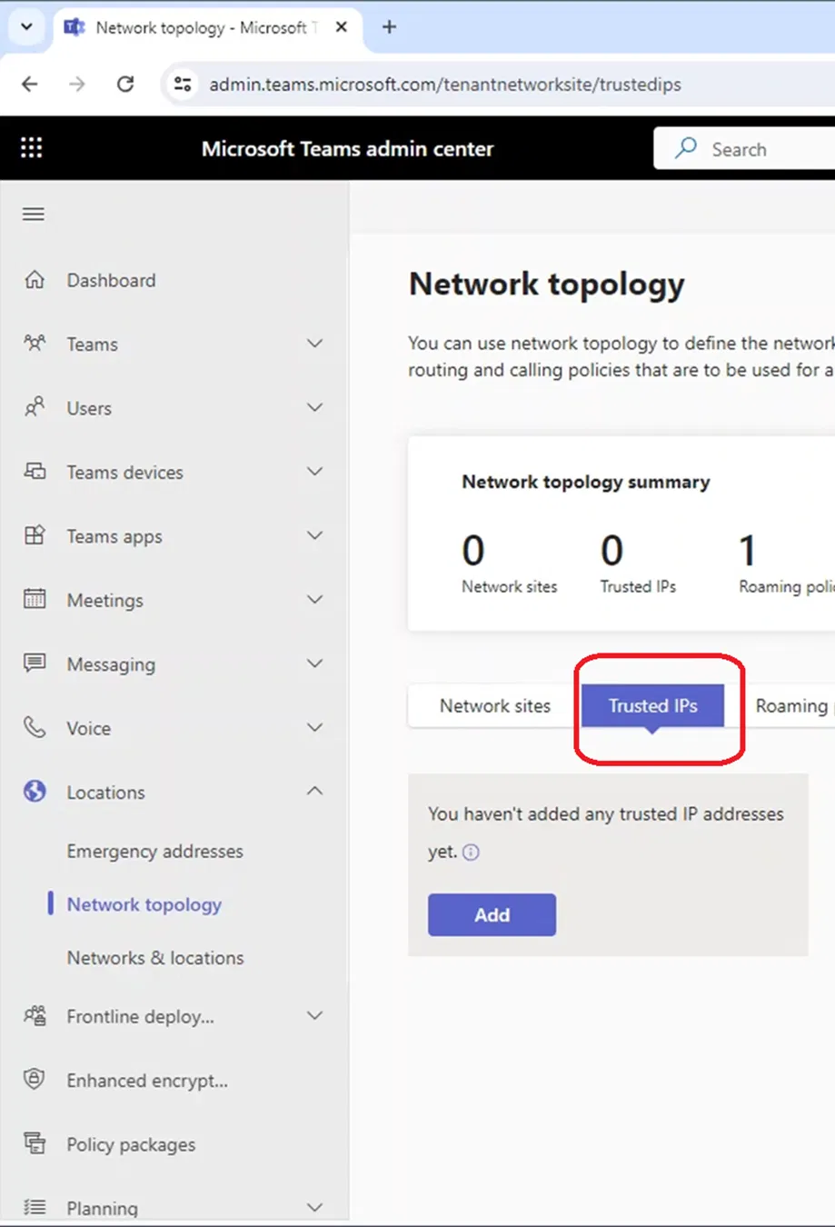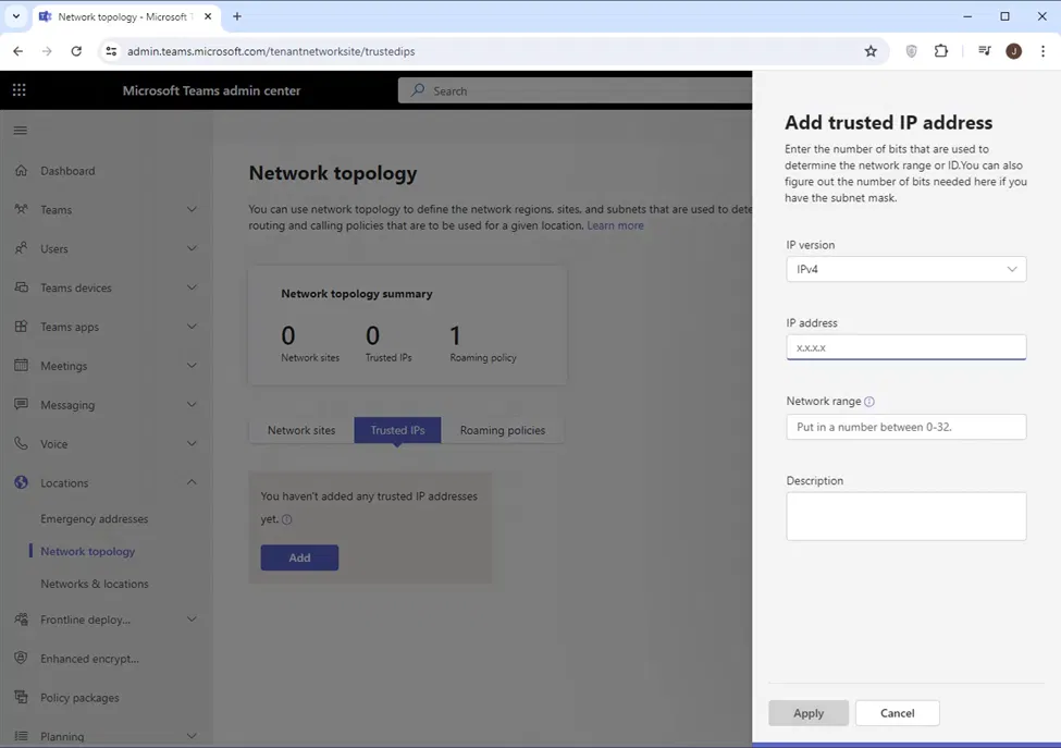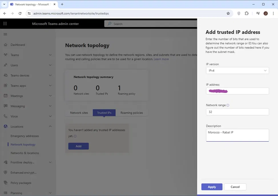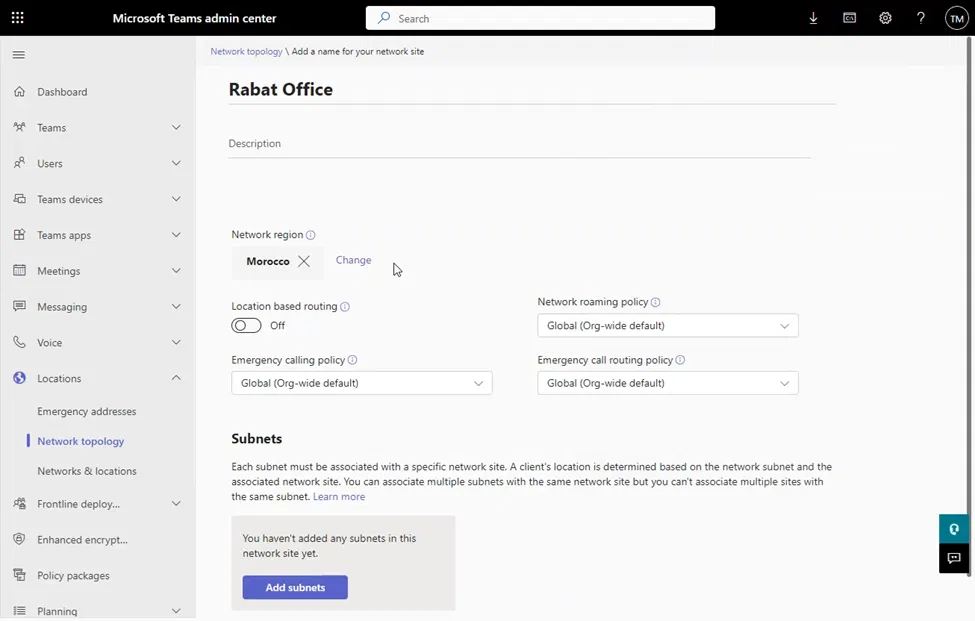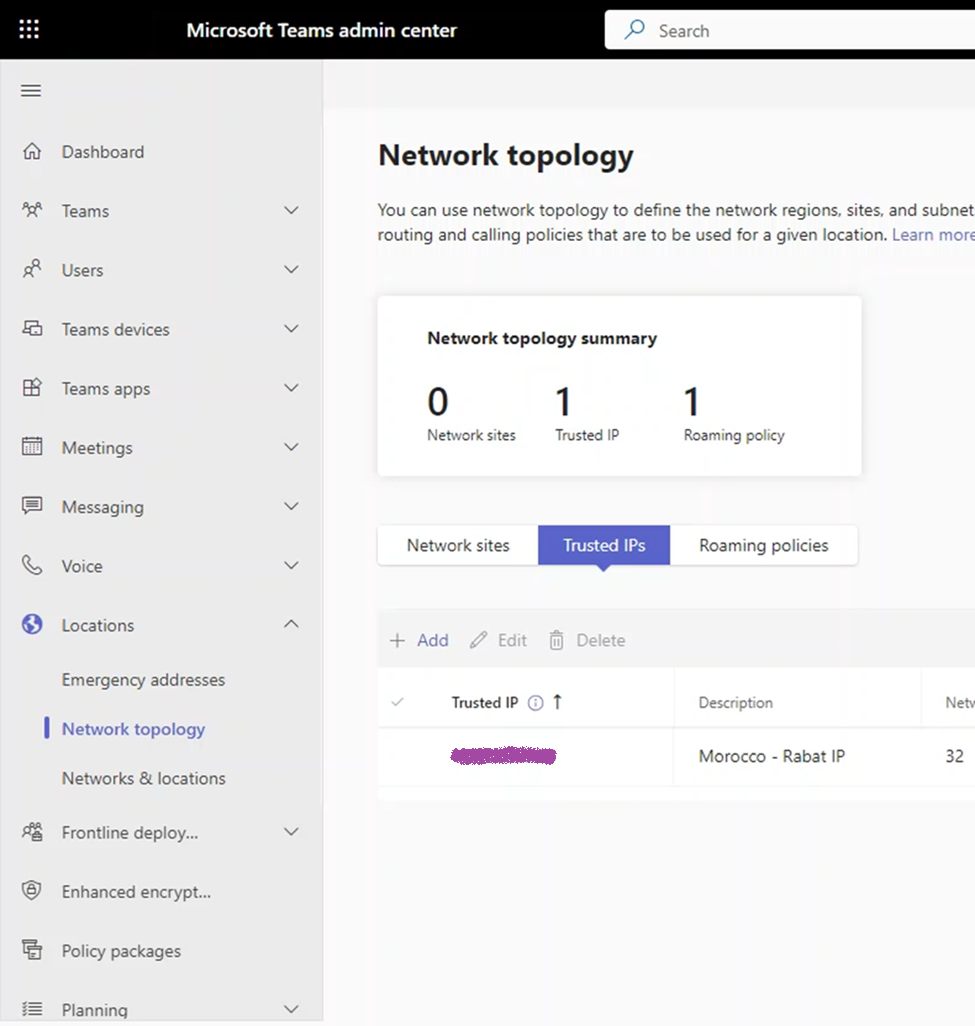 When Teams Client is really in the external network, the X-MS-UserLocation is set to external (which is the correct setting)