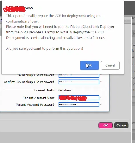 - Transfer Password from SBC: This step imports the password that has been set during the Preparing the CCE.
