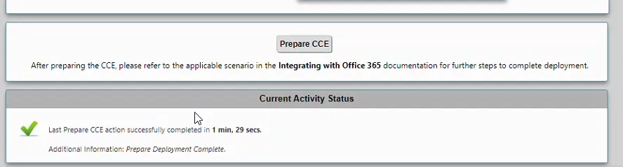 If there are no problems, you will notice the progress of “Prepare CCE” operation under “Current Activity Status”