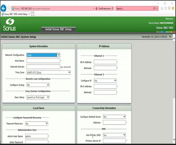 In this section, I will explain how to perform the Initial setup of Sonus (Ribbon) SBC 1000.